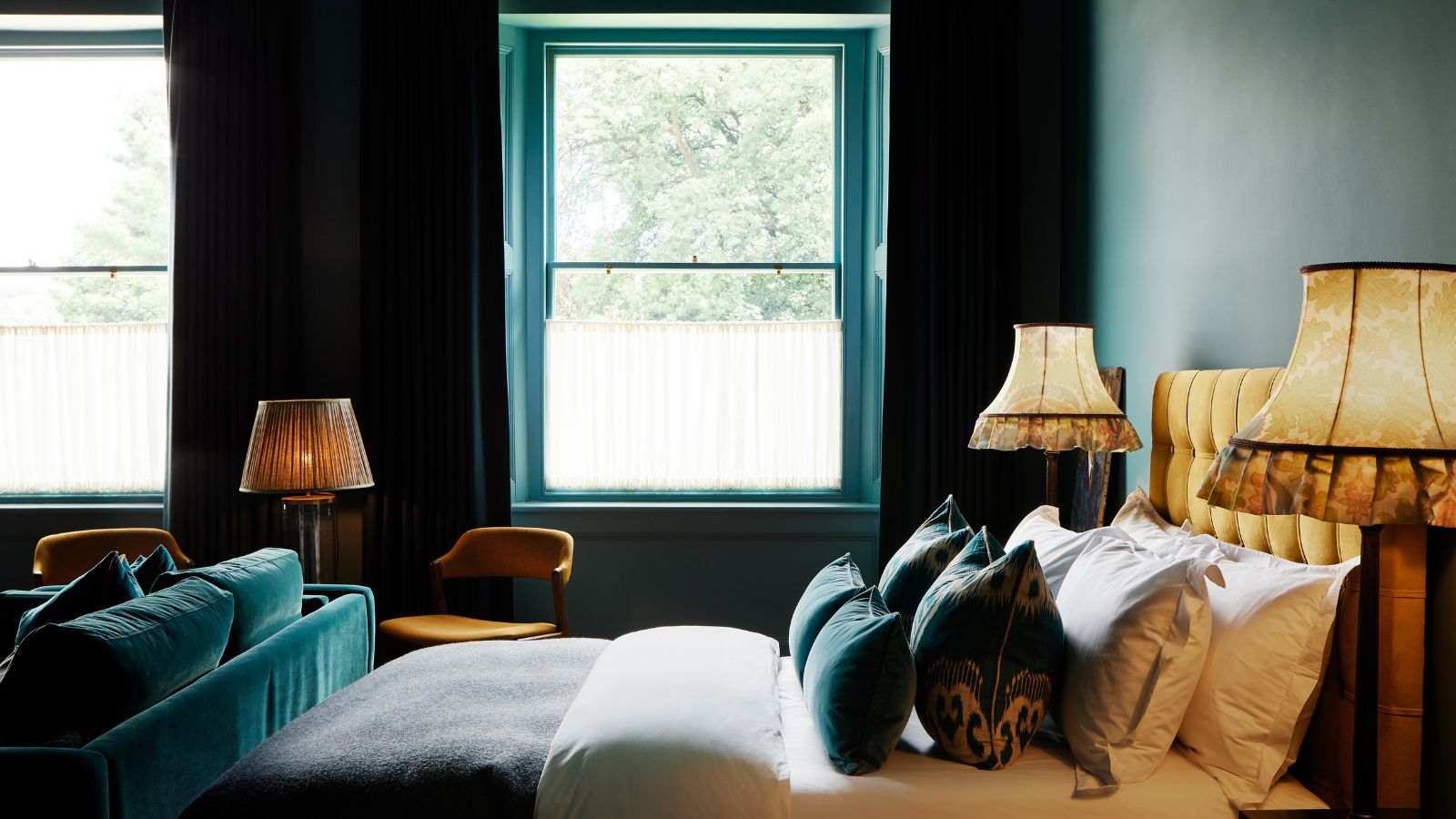 Teals are set to be big in 2026, bringing jewel-toned opulence to rooms in a modern way. In this bedroom, Mylands’ Burlington Arcade No. 216 was used on the walls.