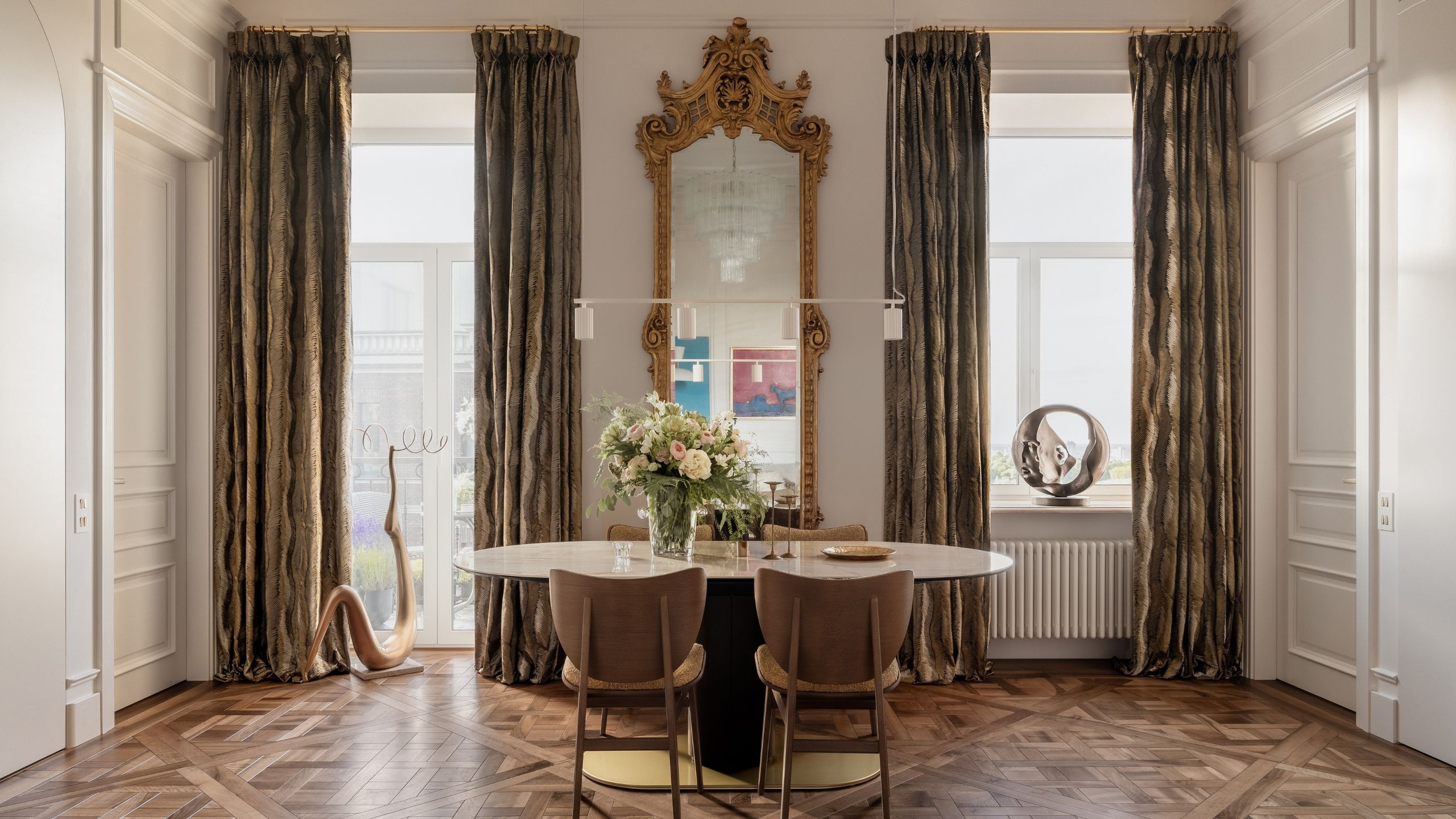 In Art Nouveau homes, you may find decorative crown molding that showcases the building’s history, or beautiful colored tile in the powder rooms of mid-century modern homes (and yes, it’s back in style). In more formal homes, Susannah says, “it’s the moldings, boiserie, draperies, and traditional proportions that give the architecture its identity.”